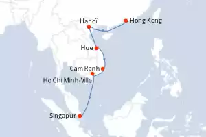 Itinerario : Hong Kong, Hanoï, Hue, Cam Ranh, Ho Chi Minh-Ville, Singapur