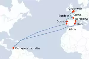 Desde Greenwich parten prestigiosas líneas de cruceros, como Regent Seven Seas Cruises. Barcos como el Seven Seas Voyager navegan con el destino principal